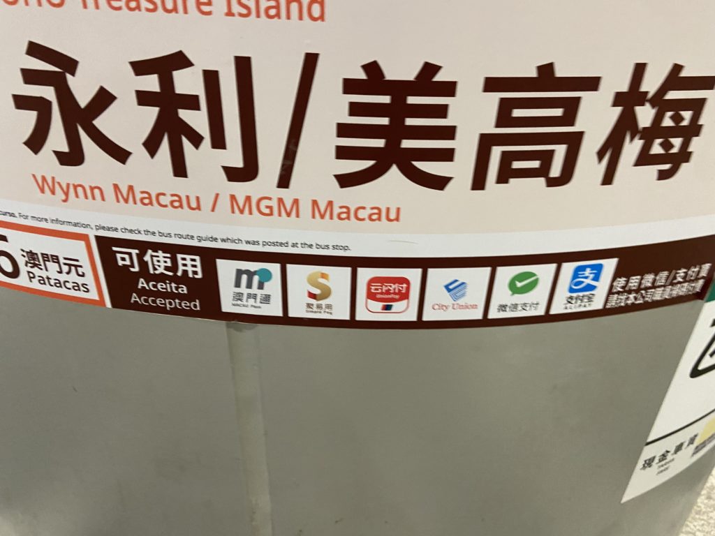 空港でキャッシングをしていたので、香港ドルもマカオパタカも持っていたのですが高額紙幣しか持ってなくて、バスに乗れませんでした。