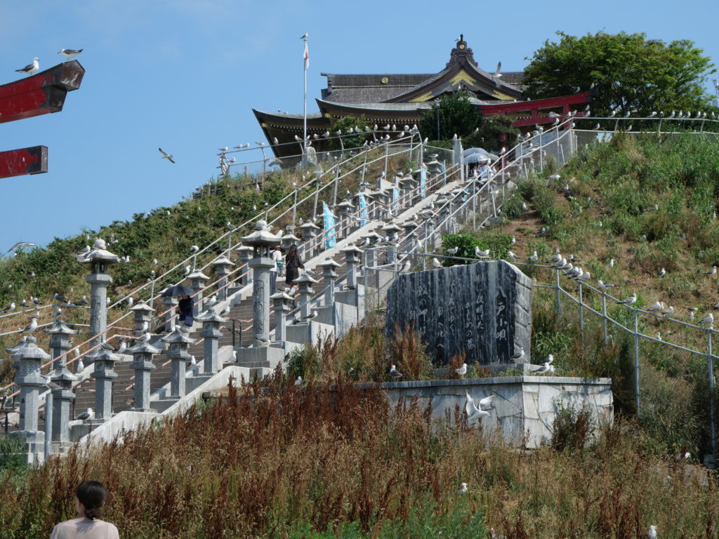 鳥恐怖症のわたしは怖くて、階段を登った先にある神社の入り口まで辿り着くことができませんでした。
